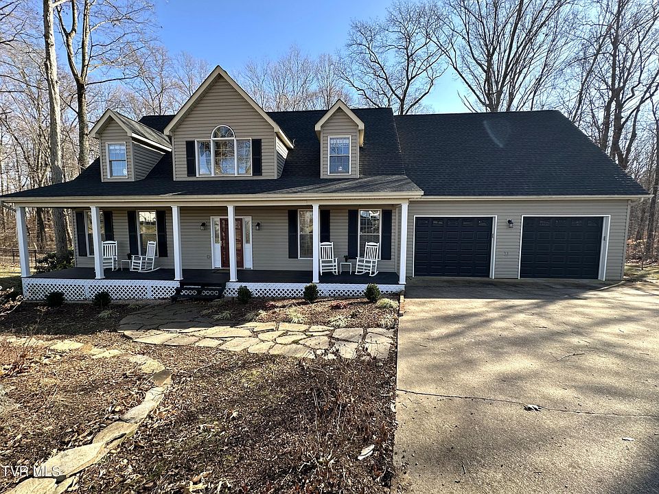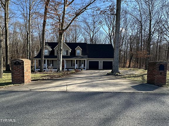 COUNTRY ELEGANCE is what you will find in this beautiful custom-built Cape Cod home. Peacefully nestled among mature trees, it is just minutes from I-81 with easy access to Johnson City, Bristol, and Kingsport. The sun-filled main level of this exquisite home features a two-story great room with cathedral ceilings, an electric fireplace, and a towering arched window. French doors in the great room lead to the expansive screened-in back porch with access to the fully fenced backyard - perfect for children and pets! The immaculate kitchen is well designed and fully equipped with stainless steel appliances, granite countertops, a cozy eat-in nook, and an island with additional seating space. The laundry room is conveniently located off the kitchen and has a utility sink, cabinet, and shelving with access to the 2-car garage and open back porch. The formal dining room, half bath, and oversized master bedroom are also located on the main level. The master bedroom boasts a tray ceiling and an en suite bathroom complete with jacuzzi tub, tiled shower, and walk-in closet. Two good-sized bedrooms, a bonus room, full bath, and massive rec room are located on the second level. The rec room has a spacious wet bar that showcases a custom-made chestnut bar top, abundant cabinetry, and two under the counter refrigerators. Wood floors, ceramic tile, and contemporary lighting throughout, this home is ideal for entertaining friends and family or just relaxing into a tranquil retreat. The new architectural shingled roof was installed on the home and its large shed in 2023. The shed, currently being used as an exercise room, is furnished with a split heating and cooling unit. The home's heat pumps were replaced less than 5 years ago, and the washer, dryer, dishwasher, hot water heater, and microwave are less than 3 years old. The inside of the home, back and front porch, open deck, and garage were completely repainted in 2023. Some of the furniture can convey with a fair offer. Don't miss out! This pristine move-in ready home must be seen to fully appreciate all it has to offer!
