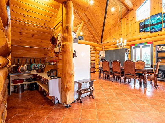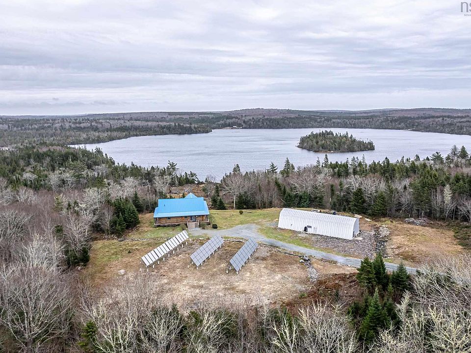 Once in a lifetime opportunity in beautiful Nova Scotia. This majestic 2470 sq ft custom pine log home with an 1800 sq ft partially finished walk-out basement is set on 25 acres of mixed trees and offers 1375 feet of pristine lakefront. The main level features ceramic floors throughout, a stunning open concept kitchen, dining and living area with 22 ft cathedral ceilings, and beautiful lake views. The spacious, sound-proofed primary suite includes a luxurious ensuite, walk-in closet, and a private balcony with direct access to the hot tub. The main level also includes a laundry room with a half bath. The loft provides a bright open space perfect for an office, studio, gym or can be converted into two additional bedrooms if needed.Built with large 40 cm logs, the home exceeds R2000 energy standards and includes energy-efficient appliances, vinyl windows and 6 ft double garden doors. The property features a wide, low-maintenance wrap-around composite deck and accessibility touches including wider doorways. A 14.5 KW solar system with Net Metering, hot water collectors, and an air-to-water heat pump provide in-floor radiant heat and summer cooling, while the commercial-grade diesel generator, battery bank, and oil-fired water boiler ensure reliable backup power.A fully insulated 2400 sq ft workshop with in-floor heat, its own water supply and septic, and commercial use approval offers endless possibilities for business or hobby use. A new 10 x 33 greenhouse with modern amenities is also included. Enjoy ATV and snowmobile trails throughout the property, and a peaceful lakefront area ideal for swimming, boating, fishing, or relaxing. The lake offers approximately 7 meters of depth with a gradual shoreline. Located just 20 minutes from hospital and essential amenities, 35 minutes to Taylor Head Provincial Park’s sandy beaches, and under 2 hours to Dartmouth, Halifax and the Halifax Stanfield International Airport. Full list of inclusions, upgrades and luxury finishes!