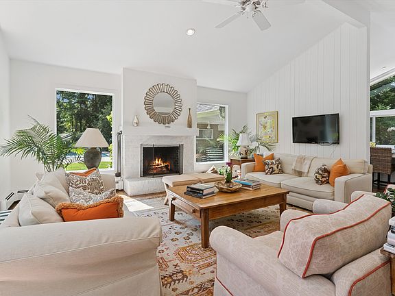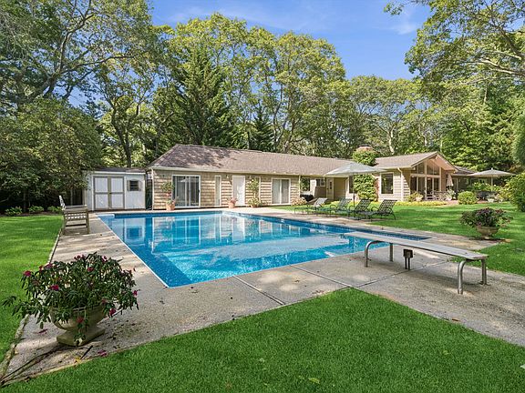 Tucked away south of the highway in East Hampton, this stylishly home offers the perfect seasonal escape. Set on a beautifully landscaped one acre property, the residence is surrounded by mature trees and vibrant gardens, creating a sense of privacy and relaxation.Inside, you'll find a light-filled living room with a cozy fireplace, a well-appointed dining area, and a modern kitchen designed for entertaining. The main house features three comfortable bedrooms and two full baths, providing plenty of space for family and guests.Step outdoors to enjoy a resort-like setting complete with a 20' x 40' heated gunite pool, and a spacious patio for lounging or dining al fresco. As a bonus, the pool house is equipped with a recreation room, two bedrooms, and one bath.Located just minutes from East Hampton Village shops, restaurants, and world-famous Georgica and Main Beach, this home blends comfort, convenience, and coastal charm for the ultimate Hamptons summer experience.