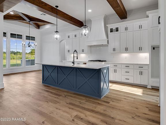 undefined The large, covered patio adjacent to the kitchen further enhances its size and can be used as an overspill area during festive occasions. It features an outdoor kitchen with a gas grill and fireplace. The master bedroom has a raised ceiling and opens into the well-featured bath with dual vanities, a standalone tub, large shower and a walk-in closet. The split bedroom layout includes a shared hall bath for bedrooms #2 and #3. A fourth bedroom and bathroom is located on the opposite side of the house giving guests a little privacy. Other amenities include a laundry room, walk-in pantry off the mudroom, and an ample storage space. Don't miss this unique opportunity to secure your future.