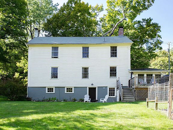 A magical spot in the historic hamlet of Eagleville with direct access to the Battenkill River famed for it's beauty, flyfishing, kayaking, and canoeing snuggled just below the historic Eagleville covered bridge. This special early home is abundant with original detail and charming features- two working fireplaces, extra wideboard floors, woodwork and built ins. The master bedroom has a large loft area perfect for office. extra guests or library nook. The cozy family room has gorgeous stone fireplace and is open to the outside deck. The remodeled kitchen has slate counters with a dining area with a woodburning fireplace. The treed backyard slopes down gently for river access and plenty of space for gardening and recreation. Minutes to Cambridge village and a stones throw to Vermont