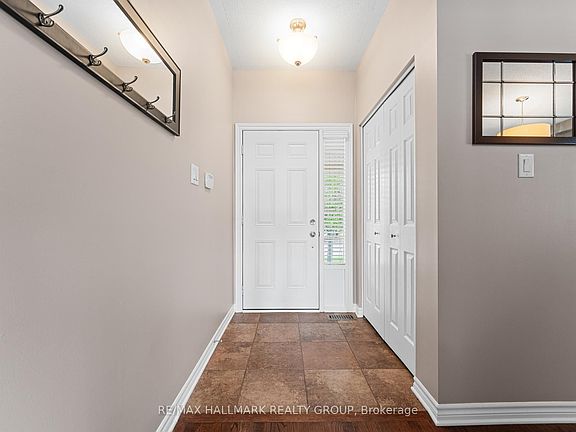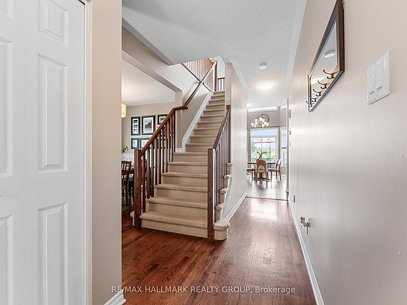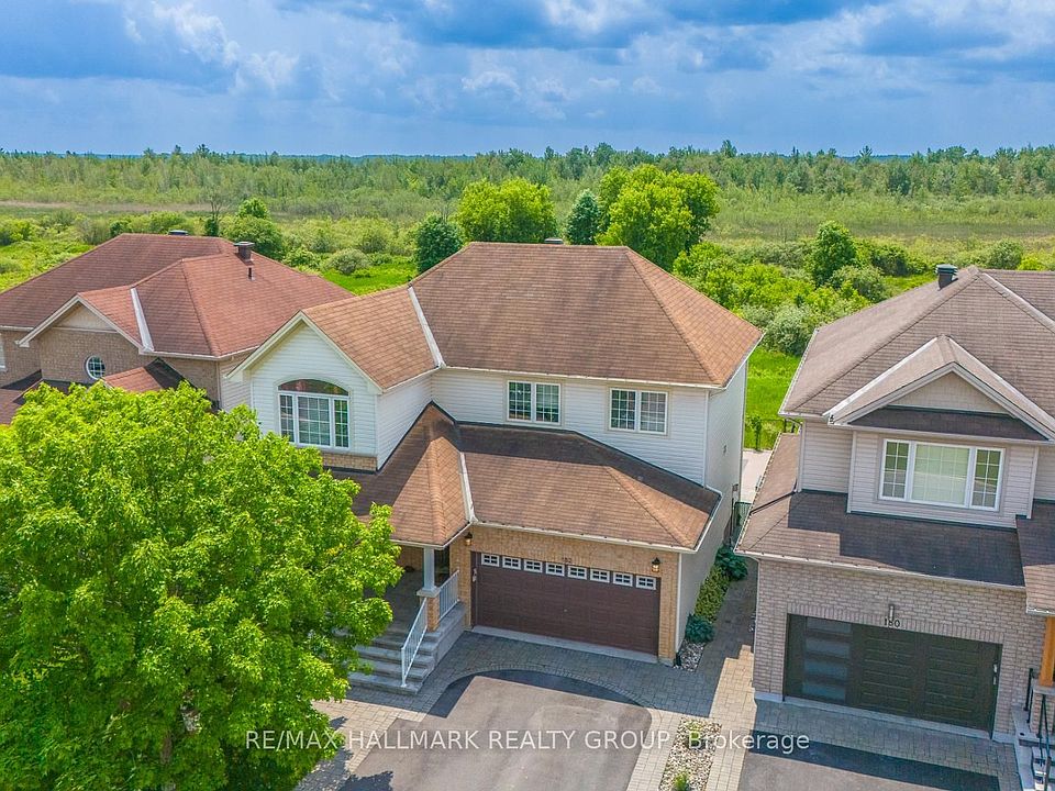 Discover this stunning 4+1 bedroom home with a spectacular backyard retreat, nestled on a quiet street in sought-after Bradley Estates. Backing onto tranquil NCC greenspace and the scenic Prescott-Russell Trail, this home offers unparalleled access to nature trails and is just steps away from several parks and a splashpad. A charming front verandah welcomes you into the open-concept living and dining room, boasting elegant wainscotting. Beautiful kitchen features granite counters, stainless steel appliances, a corner pantry, and an island with breakfast bar. The inviting eating area is framed by soaring ceilings and dramatic bay windows that extend to the second level, flooding the space with natural light. Desirable main floor family room anchored by a cozy gas fireplace and custom built-in shelving. Upstairs, the spacious hallway is open to below and leads to a generous primary suite with double closets and 5-piece ensuite including a soaker tub and separate shower. The second level is complete with three additional bedrooms, a full 4-piece main bathroom and laundry for your convenience. The carefully thought-out finished basement offers an abundance of well allocated storage spaces, a large recreation room with plenty of space for a home office or gym area, plus a fifth bedroom and additional full bath ideal for hosting guests. Step outside to the sun-filled, south-facing backyard oasis, beautifully landscaped with composite deck, interlock patio, and inground pool all set against the serene backdrop of protected greenspace. Embrace a lifestyle where nature, community, and modern comfort converge this exceptional Bradley Estates home offers more than just a residence; it invites you to live your best life.