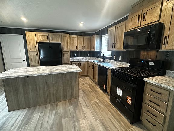 Available for purchase at $84,125 or rent for $1,199 per month, this spacious 16 x 76 home offers 1,216 sq ft of modern living space with three bedrooms and two full bathrooms. The large, open concept living room and kitchen combination is perfect for entertaining or relaxing with loved ones. The kitchen features a generous island and comes fully equipped with all appliances. Two front bedrooms share a full bath, while the master suite boasts a private bathroom and a spacious walk-in closet. Designed for both comfort and style, this home is perfect for creating unforgettable memories.