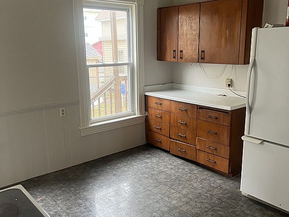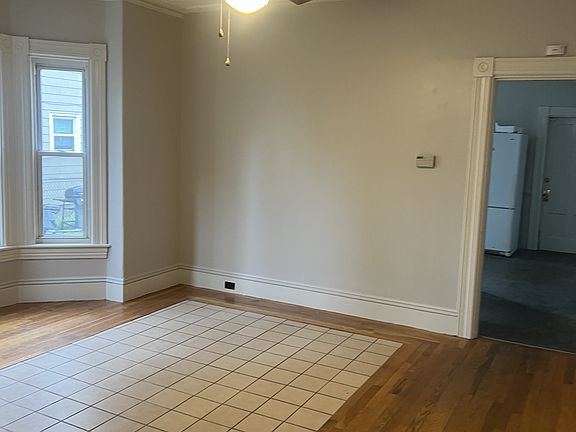 High ceilings, bay window, tin ceiling, hardwood floors.