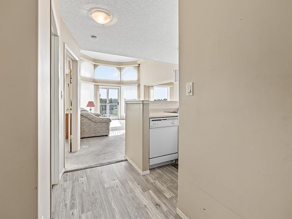 Spacious TOP FLOOR opportunity in one of Riverbends most sought after +18 Condo complexes! With gorgeous east facing views from the oversized patio, tons of natural light from the luxurious vaulted ceiling, and a formal dining room, you'll love hosting family and friends! Offering forced air heating and central AIR CONDITIONING (no baseboard heaters here), an open concept kitchen, and a unique loft area, great for an out of the way craft or TV room! With a large primary bedroom, WALK IN CLOSET, and in suite laundry what is there not to love!? With newer upgraded vinyl floors, this place is TURN KEY! Including one large detached single car garage, with plenty of room for storage, this property is a MUST SEE. With a GYM, Social room and guest suite, LOW condo fees and a great pride of ownership with mostly owners living in the building, there's plenty to appreciate - do not miss this one!