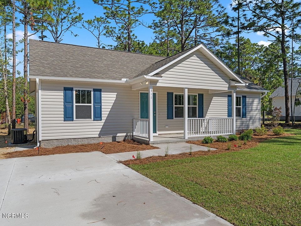 Welcome to another home under construction by Travis Cruse of Cruse Construction in Boiling Spring Lakes. Enjoy pristine views of Harper Lake (with water currently in it) from the back of your home. This 3-bedroom, 2-bathroom home has all the quality features to be expected in a Travis home and lives larger than it is. Standing at 1204 heated square ft. with an open design layout this floor plan has minimized wasted areas such as hallways and comes with a 16 X 12 ft. screened in porch, 125 sq. ft. outdoor patio, mechanical room, and a single car driveway that flares into a 2-car driveway. True custom details include a coffered ceiling in the living room, tray ceiling in the master suite, Curtis Crown molding throughout, and built-in cabinetry in all closets. As a Cruse construction standard this home will include attractive Olde Southport style door/window headers, granite countertops throughout, soft close dovetailed drawers/cabinets, durable LVT/LVP flooring, craftsman panel interior doors, and ceiling fans in every room. The demands for energy efficiency are met with a beefed-up insulation package, raised slab foundation, Trane heating/cooling unit, and a radiant sheathing barrier in the attic. The relaxing front porch welcomes you into an open floor plan with the kitchen overlooking a coffered ceiling great room, dining area and screened in porch. The popular split bedroom floor plan features a 13.4 X 14.8 master retreat with a spacious walk-in closet and walk-in shower. The 2 guest bedrooms and shared bath are located on the opposite side of the home for privacy. If you are searching for an affordable home full of custom upgrades including views of the lake you have found it in Boiling Spring Lakes! Home is not built yet. Plans are subject to change. Home pictured is of previous built home.