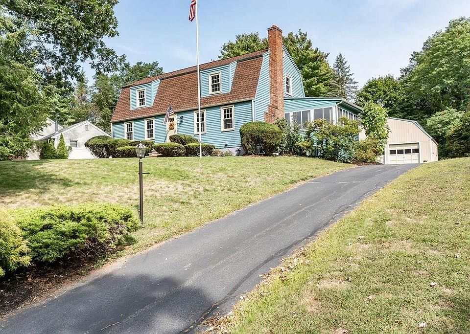 Welcome to this well maintained 3 bedroom, 2 bath Gambrel roof Colonial with flexible floor plan in move in condition . Main level includes a sunny 3-Season porch off upgraded granite kitchen with dining area with window views of large back yard, newer SS appliances, including gas convection/bake range. Dining room, den/guest room fire placed living room, and full tile bath complete the first level. HW floors throughout. Second level offers large front-back main bedroom with ceiling fan and 2 additional good sized bedrooms, newer W/W carpet and full tile bath. Finished lower level offers additional 732 sq. feet includes 21' x 22' sq. ft entertainment room with wood pellet stove and 10' x 20' office/playroom. Large private yard, newly sided 2 car garage with loft for storage. Located steps to the Rail trail and Ipswich River for your enjoyment of bike riding and kayaking.