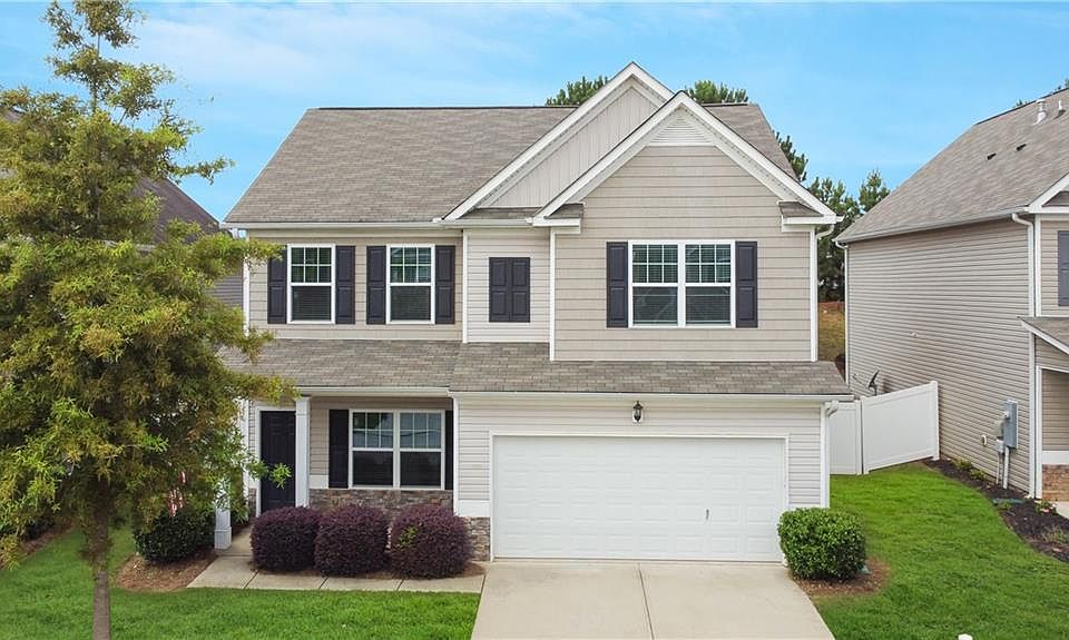 Welcome home! Feel right at home in this beautiful 4 BED/ 2 1/2 BATH home with a 2 car garage in the highly desirable Gated community of Highland Falls. This miraculously maintained home still smells brand new! Built in 2014 with many upgrades to compliment it such as granite countertops, a beautiful kitchen island, custom wood cabinets, large pantry for storage, hardwood floors throughout, gas log fireplace in living room, smart thermostat in place, 2 security cameras in place, fresh paint in the garage, new fans in 3 bedrooms, high speed internet in place and more! The main level conveniently features an open dining room, large living room area, large kitchen with island, access to the backyard, 2 car garage and a 1/2 bath. Upstairs features an oversized master suite that is large enough for a sitting area, master bath with a double vanity, garden tub and walk-in closet! 3 Additional rooms upstairs that could be used for bedrooms, offices, exercise rooms and more! Walk outside to the private backyard, plenty big enough for a garden, play area, grill area or just the perfect place to sit and relax. Convenient to shopping & restaurants within 5 minutes! Hospital right down the road. Easy commute to Marietta, E/W Connector, 75, & 285. Amenities include the common area, front yard maintenance, pool access, exercise facilities, trash pickup and ground and road maintenance! Come view today! BACK ON MARKET DUE TO BUYER'S DEFAULT. (Buyer's had home to sell that did not go through). Already have home inspection report with some items already fixed!