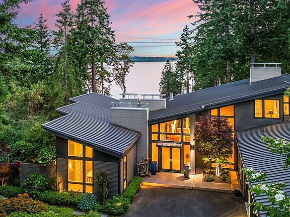 Sleek, striking, and set apart—this modern masterpiece is nestled on nearly 3 acres with dramatic views over Carr Inlet. A true expression of design and lifestyle, it offers over 5,000 SF of curated living space for those who value architectural integrity and the quiet luxury of privacy. Walls of glass flood the interiors with natural light and ever-changing views. Radiant heated floors, clean lines, and artisan craftsmanship define the open-concept spaces. The main-level primary suite is a serene escape with a sunken soaking tub and private outdoor atrium shower—spa living at home. Grand yet welcoming, sophisticated yet warm—this is a home that inspires. For entertaining, for retreat, for those who expect more.
