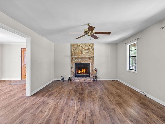 - Fireplace features: Living Room, Raised Hearth, Stone, Wood Burning