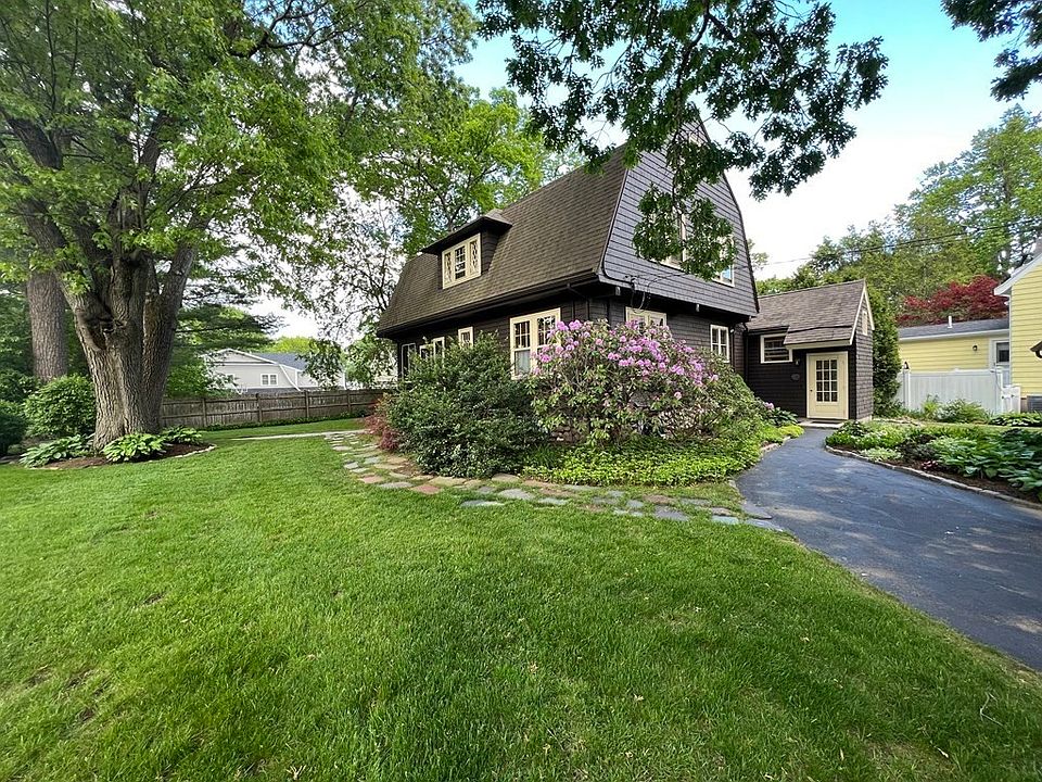 *Open House Canceled* Welcome to this charming Dutch Gambrel home just outside Needham Center! Step into the spacious interior through the inviting screened-in porch. Admire the original craftsmanship, from the hardwood flooring to the decorative windows, exposed beams, and trim work. The layout is perfect for entertaining, with an updated eat-in kitchen seamlessly connected to the sunlit family room. Host gatherings in the elegant formal dining room, complete with custom built-in cabinets. Relax in the cozy, fireplaced living room. Upstairs, you'll find four generously sized bedrooms, including a primary suite with vaulted ceiling, a sitting room/office, and a private bathroom. Additional features include a walk-up attic for storage or potential living space, solar panels for energy efficiency, ample storage options, and a workshop area in the basement. Outside, the landscaped yard boasts a well-established perennial garden and storage shed.