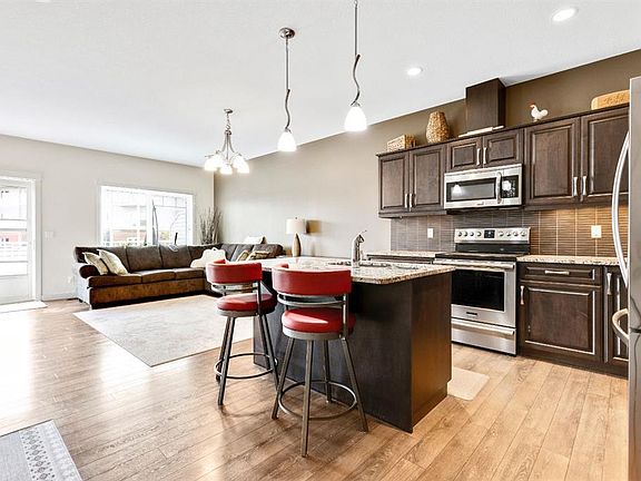 ** OPEN HOUSE SATURDAY NOV 1 - 11:00AM TO 1:00PM ** Welcome to carefree living in this beautifully designed 55+ adult villa. This well-maintained home features 2 spacious bedrooms, 2 bathrooms including a primary suite with a walk-in closet and private ensuite for your comfort and convenience. Enjoy the bright and open concept layout, perfect for entertaining or relaxing. The kitchen boasts modern stainless steel appliances, beautiful granite countertops, under mount lighting and soft close cupboards. The kitchen flows seamlessly into the dining and living areas. Outside you will find a nice sized patio with a BBQ gas line for your convenience. With an unfinished basement, there's plenty of potential to create additional living space or storage tailored to your needs. An attached double garage for your comfort. Located in the friendly community of Sagewood Villas, this home offers maintenance-free living, giving you more time to enjoy life your way. Located close to the hospital, pool, arena, shopping and walking paths. Updates include New Refrigerator March 2025, R50 insulation added to the attic Sept 2025. Call your favourite Realtor® for your private viewing today.