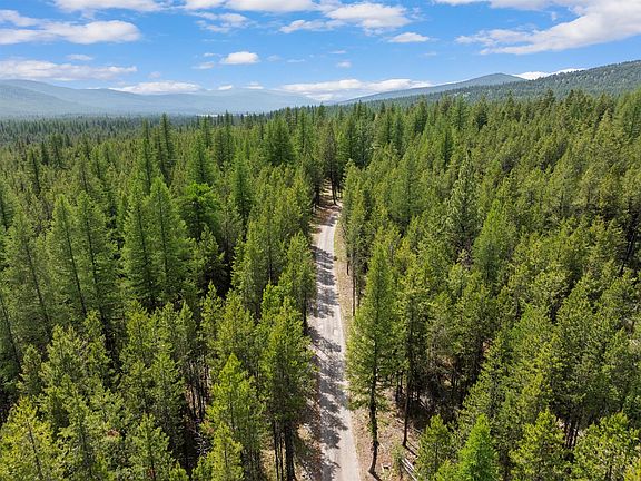Beautiful wooded 20-acre parcel with pristine location in between two breathtaking lakes, Bitterroot and McGregor! Very close to the highway without the noise makes for an easy commute. A peaceful slice of heaven with many opportunities. Two access points including a roughed in road to a cleared spot ready to build your dream home but with many other building options available. Lots of room for horses and recreational use. Close to public access for hunting. Electric at road. 35-foot motor home included in sale as is.