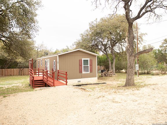 Perfect home for small family or retired living. Situated on .49-acre corner lot near Medina Lake, this charming 2 bedroom, 2 full bath 896 sq. ft. open concept mobile home provides a serene experience. Things to love about this property are: Completely fenced in with 2 property gates for convenient entry and exit, large septic tank setup for additional RV or tiny home, security cameras, enormous front yard that is level and maintained for children or family to run and play, mature oak trees, backyard fire pit and BBQ pit. The home comes fully furnished and ready for move-in. Enjoy the April 8th 2024 Solar Eclipse from this property!