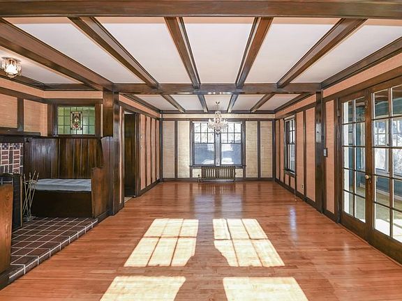 - Din Dscrp: Flooring - Hardwood, French Doors, Fireplace, Main Level, Wainscoting, Open Floor Plan, Window(s) - Picture, Ceiling - Coffered, Window(s) - Stained Glass