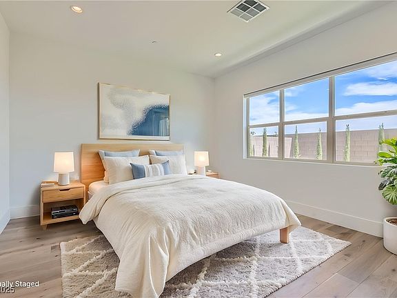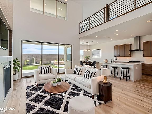Best priced home in Arcadia with Strip Views!! Experience elevated living in this modern Toll Brothers home in Summerlin West’s coveted Arcadia community! This newly built 2-story gem offers unobstructed Strip and mountain views, 5 spacious bedrooms with a downstairs primary bedroom suite, 3.5 luxurious baths, an expansive loft, a 2-car garage, a landscaped backyard with fruit trees and a raised sitting area. Inside, enjoy 20ft. soaring ceilings, an open floor plan, hardwood floors, JennAir appliances, full overlay cabinets, custom closets, and epoxy garage floors. Designer finishes include marble & waterfall quartz countertops, gas fireplace with a floor-to-ceiling accent wall, extravagant chandeliers, 7" baseboards, LED lights and roller shades throughout, a spa-like zero-threshold shower with a rain showerhead and a freestanding tub. Additional features: tankless water heater, water softener, 4 security cameras, and a private balcony to soak in the views. A true Summerlin showpiece!
