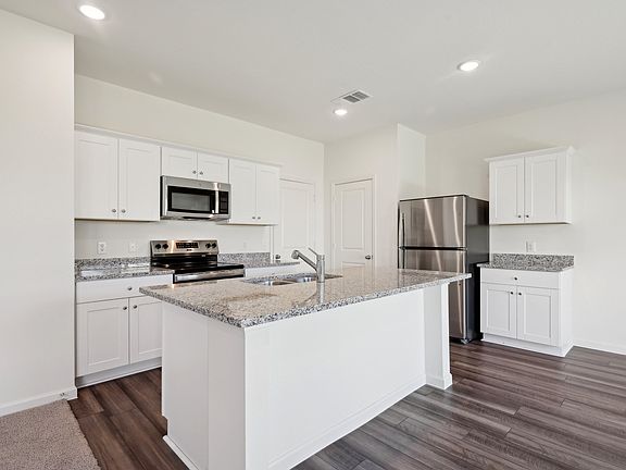 Welcome top top selling Voyager Plan with an open concept kitchen and family with large island open to natural light at back of home. This home is walkable on sidewalks to pool and playground opening next Summer. Step into your next home through the foyer from the front porch and continue down the hall to the main living space, passing a convenient powder bath along the way. Upstairs, a loft connects two additional bedrooms—one with a walk-in closet—that share a bath. As you head toward the primary bedroom, you’ll pass the laundry room before arriving at the spacious primary suite, complete with a walk-in closet and private primary bath.