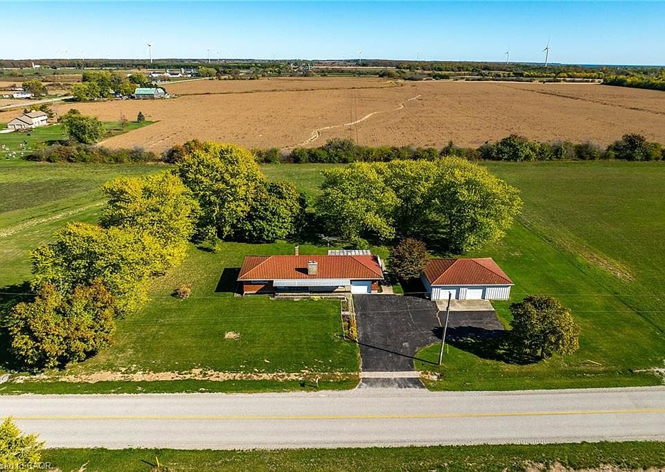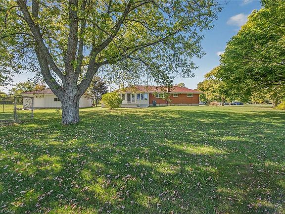 Lovingly maintained, Tastefully updated 2 bedroom, 1 bathroom Bungalow situated perfectly on desired 16.41 acre lot with a mix of manicured lawn & workable land all on quiet Sweets Corners Road. Great curb appeal with brick & complimenting sided exterior, back deck, oversized paved driveway, metal roof, attached garage, & bonus detached garage – perfect for hobbyist, workshop, or extra storage. The flowing interior layout features large principal rooms highlighted by updated eat in kitchen with tile flooring, formal dining area, large front living, back sunroom overlooking peaceful country views, 2 spacious bedrooms, 4 pc bathroom, & welcoming foyer. The finished basement includes rec room with gas fireplace set in brick hearth, laundry room, & ample storage. Conveniently located minutes to Lake Erie, Selkirk, Cayuga, & Dunnville. Relaxing commute to Hamilton, Niagara, & 403. Ideal for the growing family, those looking for main floor living, or the perfect hobby farm with room to design & expand. Rarely do properties with this acreage, size, & location come available. Experience the Haldimand Country Lifestyle.