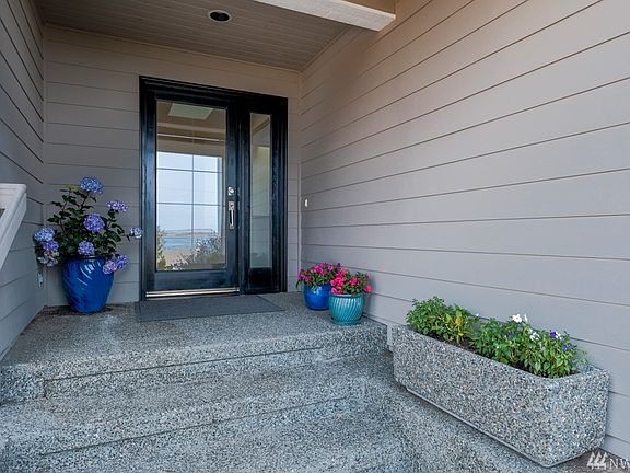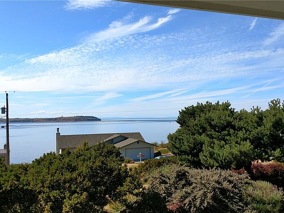 SENSATIONAL Water/Oly Mtn views with captivating Sunsets to knock your socks off! One-level living in this NW Contemporary home w Vaulted ceilings, Skylites & High Windows w sizable Liv rm & Dining rm Front and Ctr. The View is Everywhere! Propane Fireplaces in both LivRm & Mstr Suite. Large walk-in closet, jetted tub, shower and then w covered deck for more View watching. Kitchen is top notch; Den/office with french doors to Liv Rm;2nd bdrm, Bath & Util rm near garage. Impressive! Come See.