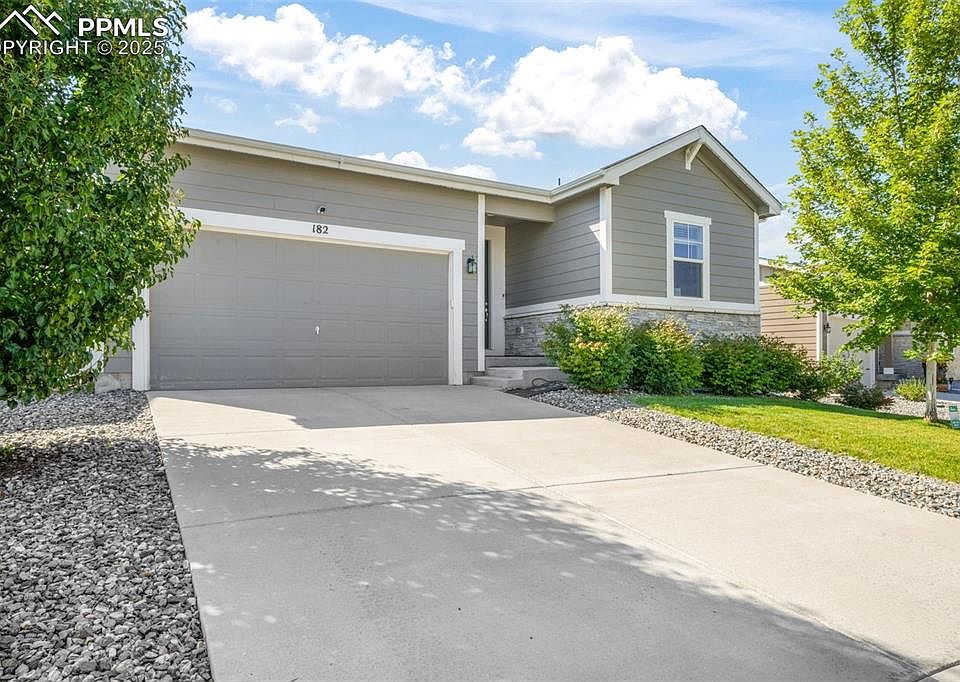 Welcome to this inviting ranch-style home in the desirable Bella Mesa community of Castle Rock. With 3 bedrooms, 2 bathrooms, and a 2-car garage, this home offers the perfect blend of comfort, convenience, and modern finishes—all on one easy-to-live-in level. The open kitchen is the heart of the home, featuring granite countertops, stainless steel appliances, an oversized sink, pantry, and plenty of cabinet space. Pendant lighting adds a stylish touch, while the kitchen flows seamlessly into the spacious family room, making it easy to gather for meals, movie nights, or celebrations. Durable LVP flooring and carpet provide the right balance for busy households. The primary suite includes a large shower, granite countertops, a walk-in closet, and pre-plumbed for a second sink installation. Large windows throughout the home fill each room with natural light. Additional features include central air conditioning, a radon system, and a new roof installed in 2023. Step outside through 8 ft double sliding glass doors to a covered patio overlooking a beautifully landscaped, fenced backyard—ideal for play, pets, and family barbecues. Close to neighborhood parks, open space, trails, schools, and recreation, this home is move in ready!