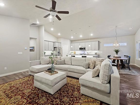 Better than new in North Meridian—close to everything and centrally located for easy access across the Treasure Valley! This immaculate single-level home offers a desirable split-bedroom layout with tall ceilings throughout and an open-concept design that lives bright and spacious. In addition to 3 bedrooms, enjoy a large dedicated office—perfect for working from home, hobbies, or guests. The kitchen is built for gathering with painted cabinetry, quartz countertops, tons of cabinets, and a huge center island with room for seating. Relax in the airy great room, then step outside to a covered back patio for easy outdoor living, all on a corner lot that adds breathing room. A large 3-car garage provides space for vehicles, toys, tools, and extra storage. Convenient to shopping, dining, and everyday essentials while still offering a quiet, comfortable place to call home. Clean, modern, and truly shows like brand new! Move-in ready and thoughtfully designed for privacy, entertaining, and low-maintenance living. Don’t miss this Meridian gem!!!!