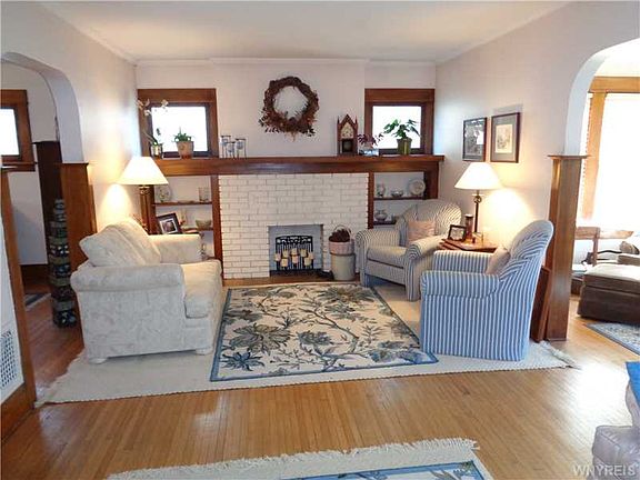 This spacious 3+ bedroom, 1.5 bath home is loaded with charm and awaits your inspection! Gorgeous hardwood floors and natural woodwork thru-out. New ceiling in banquet sized dining room. Family room! Bright den/sitting room off of living room! Updated kitchen with new dishwasher. Updated baths! Newer furnace and central air (2014).New water meter, shut-off valve, and sump pump in the water proofed DRY basement with glass block windows. Roof approx. 10 yrs. old. Fios ready! All appliances included! 4th bedroom possibility with built-ins on the 3rd floor currently used as storage.