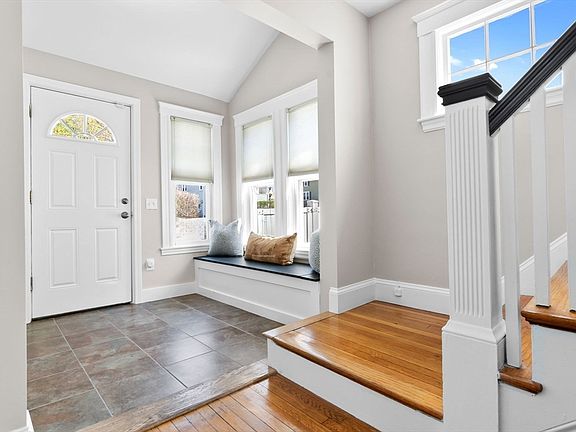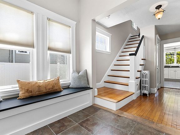 Welcome to this charming, move-in ready Colonial located in the highly desirable Robin Hood neighborhood. Set on a well-maintained lot, the home offers a charming fenced yard and a back deck—ideal for enjoying sunny afternoons, al fresco dinners, or quiet weekend mornings. Step inside to a warm and inviting entryway featuring a built-in bench with storage. The first floor boasts a bright kitchen with white cabinetry, granite countertops, and a breakfast bar, a sun-drenched dining room with direct deck access, a cozy living room with a functional fireplace, and a window-lined study—perfect for a home office, playroom, or reading nook. Upstairs you'll find three comfortable bedrooms, a full bath, and a walk-up attic with potential for storage or future expansion. The fully finished basement adds 400+ sq ft of flexible space, including a half bath, laundry area, and walk-out access to the backyard. Enjoy close proximity to local shops, dining, schools, parks, and the Tri-City Bike Path.