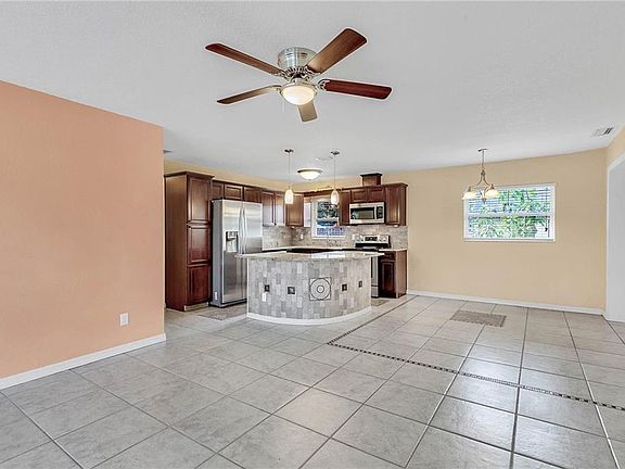 This fully REMODELED home sits on an oversized lot and as a bonus, has a large concrete block shed which is wired for electricity and can be used for storage or as a workshop! The living area is very open with the kitchen overlooking dining room and living room. Upgraded kitchen features granite counters, tile backsplash, STAINLESS STEEL appliances, and large island with breakfast bar. Master bedroom has a walk-in closet and updated half bath with separate door leading to the shower room, which is also shared with the other half bath. Separate family room is located to the rear of the home with sliding glass door that leads to the covered porch and HUGE backyard. Laundry room is located inside the one-car garage, along with a separate storage space perfect for tools or lawn equipment!
