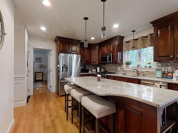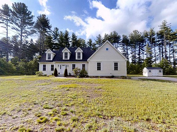 Luxury, quality and space abound in this magnificent 2013 Cape style home featuring 7 rooms 4 bedrooms, 2.5 baths, 2 car attached garage , 2348 sq ft. situated on large private flat 2.10 acre lot abutting conservation land! Large open concept first floor with eat in kitchen, island , granite, SS Bosch appliances, the kitchen is open to the fireplaced family room with cathedral ceiling, large dining room with chair rail, shadow boxing, crown moldings. The first floor primary suite features hardwood floors, walk in closet and bathroom with a double vanity. The second floor features 3 gigantic bedrooms, also a full bath. Many upgrades with this home, granite front steps, cobblestone patio, irrigation, central air, first floor laundry, Located minutes to Rte 101A, 122 and shopping! A private oasis with a lot of space and immaculate condition. A newer home for under 600K with 2 acres! Hurry won't last !