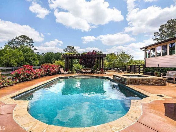 Beautiful European Farm Style home in the heart of Milton just 5 min to Cambridge HS & King's Ridge. Custom built in 2012. Open plan with pastoral views from every room thru Pella windows. Family Rm & Kitchen flow out to the heated/cooled porch w/ fireplace, windows & screens... great year-round space! Relax in the Pebble Tec Pool, in the hot tub w/ waterfall, under the arbor w/ dimmable lights or around the fire pit. Terrace Level features a refined rustic finish. HW's recently re-finished & interior freshly painted. Less than 4 miles to downtown Alpharetta.