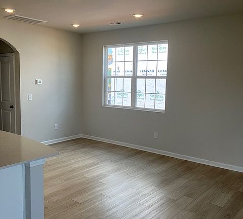 MOVE IN READY! New two-story townhome, designed with comfort and elegance. The first floor offers both a covered front porch and back patio for optimized indoor-outdoor living. An open design seamlessly connects the family room, kitchen and breakfast nook. Upstairs are two secondary bedrooms and a luxe owner's suite with a tray ceiling. This is an end unit that offers more windows with light brilliance.