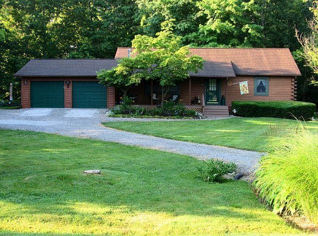 A beautiful 5 bedroom 2 1/2 bath custom built log cabin on 1.19 acres of wildlife bliss. This home was built in 1987 by Yoder Construction and has been well maintained. This home features a small mother-in-law suite with attached 1/2 bath. Also included is a finished walk out lower level complete with 3 bedrooms, full bathroom and laundry room. The first floor has 2 bedrooms (mother-in-law suite included), full bathroom, half bath, kitchen with dining space and a spacious family room complete with a log burning stove. This cute ranch style log cabin has a very large back deck that overlooks a wooded ravine with plenty of wildlife to watch. The 2 car garage and shed will give you plenty of storage to use. There is a fire pit to enjoy those summer and fall nights around the fire.