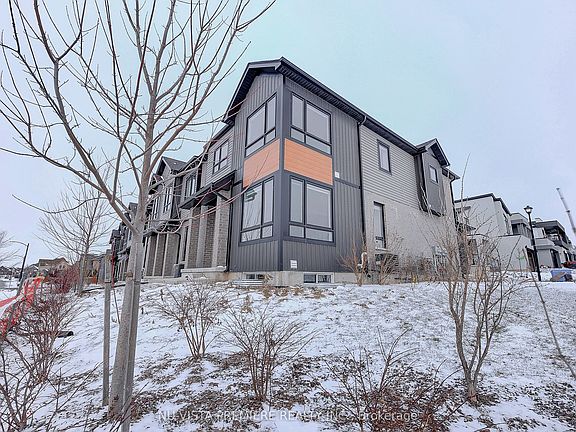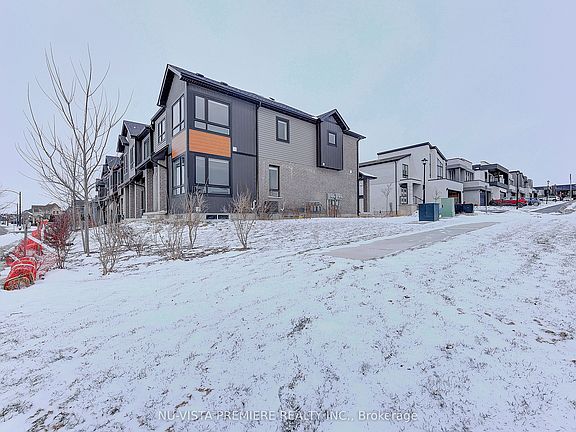 Welcome to this charming 3-bedroom, 2.5-bathroom End Unit freehold vacant Land townhome, offering a perfect blend of modern living and convenience. The open-concept main floor features bright, airy living and dining spaces, ideal for both entertaining and daily life. The well-designed kitchen is equipped with Staines steel appliances, sleek quartz countertops and ample cabinetry, creating a stylish and functional cooking space. Upstairs, the spacious primary bedroom is a true retreat, complete with a walk-in closet and a luxurious ensuite bathroom featuring a glass-tiled shower and double sinks. Two additional well-sized bedrooms share a full bathroom complete with elegant quartz countertops. The laundry room with washer and Dryer adds an extra layer of convenience to your daily routine making chores a breeze. A main floor powder room is perfect for guests. The property also includes a spacious unfinished basement, offering incredible potential to create additional living space. This home offers added privacy and extra natural light. Ideally located in a desirable neighborhood, this townhome offers a great combination of modern features, potential for future expansion, and a comfortable living space with a stunning view of the storm water pond from your back yard. Owner is offering to Pre pay one year of VLC fees.
