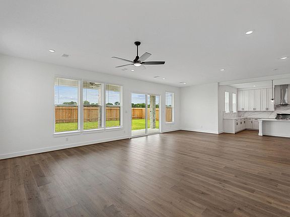 open-concept design that seamlessly blends the family room, dining area, and chef-inspired kitchen.