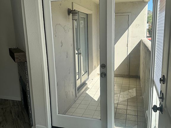 Inside, you'll find a thoughtfully designed kitchen with tons of storage, newer refrigerator and dishwasher, and ample counter space ideal for anyone who appreciates a tidy, functional layout. The open living area features a cozy fireplace and durable wood-look tile flooring that adds warmth and modern charm, and a perfect nook set for your work-from-home setup. Enjoy natural light all day through the south-facing front door positioned between two floor-length windows, and a glass patio door to your private outdoor patio. The bedroom features blackout shades, perfect for restful sleep or daytime naps, and french doors out to the patio.