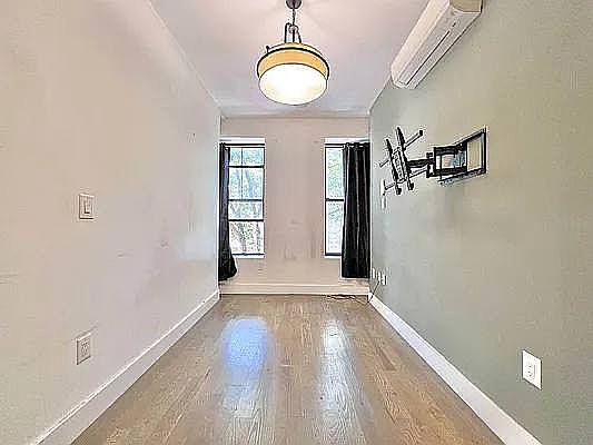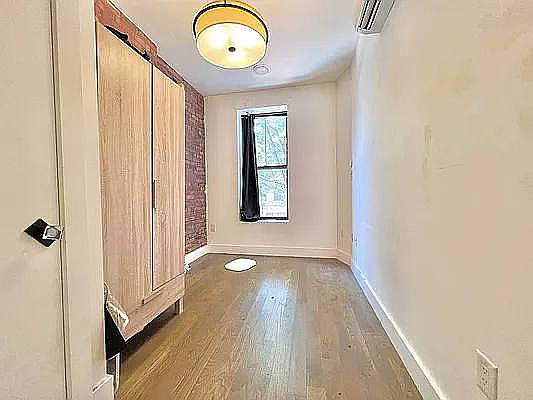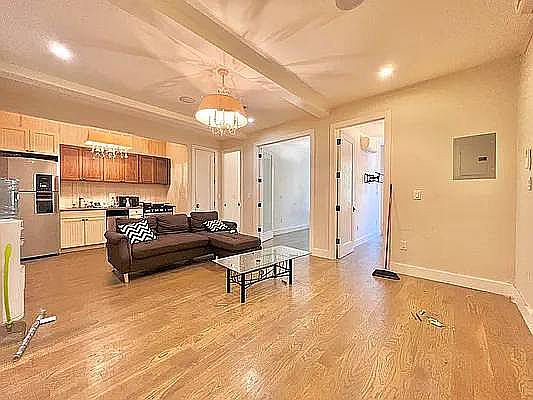 Spacious 3 Bed / 2 Bath in Ridgewood! Nearby subway stations include: Halsey St (L), Forest Av (M). Huge, bright and beautiful 3 bedroom, 2 full bath, steps from both the L and M trains. Brand new renovations, stainless steel appliances, laundry and gym in the building and an amazing roof deck with great views. Sound system that connects to your phone or computer in each room! Even the bathroom. AMENITIES High Ceilings Hardwood floors Exposed brick Central A/C Video Intercom Laundry in building Gym Roof access Stainless Steel Appliances Dishwasher Small dogs ok Cats ok Skyline view Stone countertops Hardwood Floors Outdoor Space Photos of similar unit in building