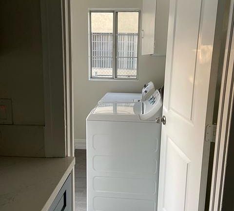 Charming house located in the Northwest community of Glendale (above Glenoaks). House is airy and well lit in a quiet neighborhood and has two (2) bedrooms, one and one-half (1.5) bathrooms with double glass windows and curtain rods installed, ceiling fans and heater. All rooms are covered with hardwood floors and are freshly sanded and polished. The master bedroom is large with a big closet. The kitchen has a gas stove and a laundry room attached, which includes washer & dryer. One (1) car garage can be used as an entertainment room or office. Large back yard great for entertainment, with an Orange tree - landscaping included once a week. House is close to the 5 and 134 freeways, several diverse super markets within walking distance, great schools part of Glendale Unified School District nearby, and close to Disney/Warner Bros./Hollywood Studios. No pets. Minimum one (1) year lease. Must see Renter is responsible for all utilities (water, electricity, sanitation - Glendale Water and Power; gas - So Cal Gas). No smoking allowed.