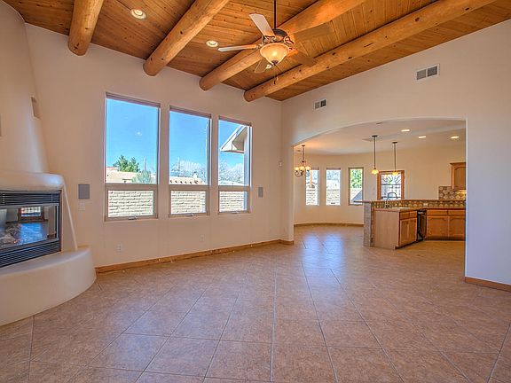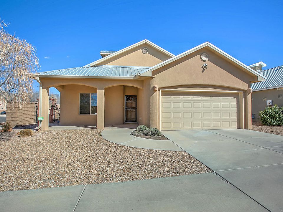 This beautiful, single-level North Valley home is teeming with northern New Mexican style and charm. Wake up each morning to beautiful mountain views out of the master bedroom and enjoy the comforts of a luxurious master bath. The spacious great room is flooded with natural light and accented with vigas and a kiva fireplace, and seamlessly flows into the kitchen and dining space. The easily accessible outdoor covered patio is perfect for entertaining or dining al fresco. With easy access to trails along the acequias that lead to the Bosque, and conveniently located near locally-owned businesses and restaurants near Rio Grande, you are sure to love this home.