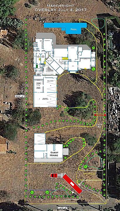 Hartwright Rd. Owner’s Notes: Hundreds of years ago archetects searched for specific geographical charactoristics ideal for the placement and construction of a home. We were looking for a constant air flow that could create natural freah air circulation within the home. That search lead us to 1800 Hartwright road. The property had perfect location for complementary solar while offinging pleasant views and a constant gentle breeze. We origionally found this property while doing an archtectural study of air flows in the area. The specific geography of the sourounding hills and proximity to the ocean generated this breeze yearound. Additionally, were looking for a property with both east and west and facing views. We wanted to be able to watch the sun rise on one side and watch it set from the other without exposing the remainging public rooms to the heat of the setting sun every evening. 1800 Hartright is a longer rectangular acre elevated from the street with it’s highest point close to the middle. Our concept was to build the main house more to the east obscured by trees with the guesthouse on the west or street side. A long serpentine, tree lined driveway would further obscure the view and privatize the main house from the lower street. The property has several large white marker boards with centermarks designed to be clearly visible from google earth. These marker board arearchetectural reference points. The water tap-in is complete and the meter is in place. There is alsoan active sewer connection with 150ft. of 4” lateral running up the hill. This was done to accommodatethe future construction along with an onsite construction office trailer. We had an ambitious plan for the property which is shown in the attached drawing overlay. Unfortunately, covid caused us to remodle our existing home and delay our start at Hartwright. The property is also roughly 1,0000ft. from a Sprinter mass transit station.