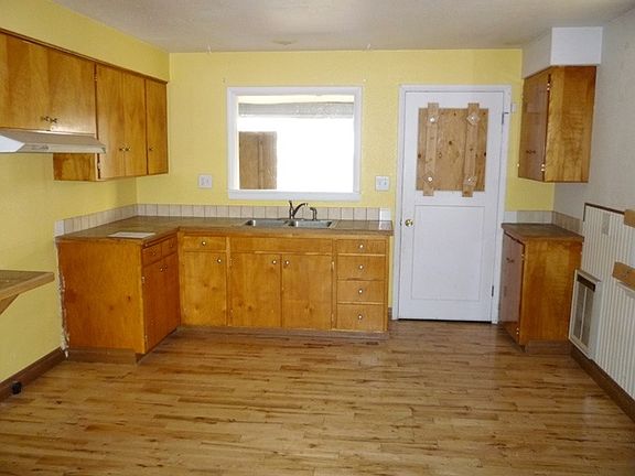 HUD Home. Two bedrooms. Updated bathroom. Metal siding. Oversized (>1000 sq. ft.) detached garage plus carport. Large lot. Assessed square footage of 780 per county tax records. Approximate square footage of 801 per FHA appraisal.