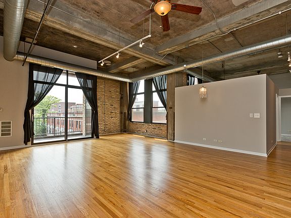 Spacious 2B 1B in the hip Logan Square available IMMEDIATELY High ceilings, exposed brick, a kitchen with SS appliances, granite countertops, a breakfast bar, living room with hardwood floors and balcony with breathtaking city views, carpeted bedrooms, and a walk-in closet. Spacious bathroom with a tub and double vanity. In-unit W/D and storage space. Cental A/C and heating system. Small pets are permitted for an additional fee. One garage parking space included. Presented by Fulton Grace Realty, Chicago, IL.