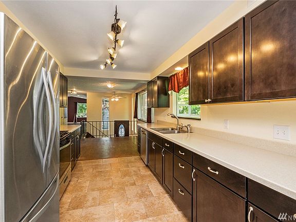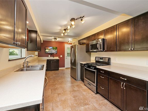 Keep cool in the summer with the electric heat pumpThis East Bremerton home is located on a quiet dead-end lane off of a residential street. The large living room has one all brick wall with an air-tight fireplace insert. Kitchen has all appliances. Laundry room is upstairs next to kitchen. Two bedrooms are upstairs and one is in the basement. Master bedroom has 3/4 bath attached. A large part of the basement is unfinished and useable as shop/storage or kids play area. The basement also has a finished room for an office. Newer oil furnace with heat pump to save on fuel costs. Large single garage with newer opener. Close to PSNS, Seattle ferries & shopping, About 20 minutes to Bangor submarine base. Public water system and septic ($15.00 per month charge applies to septic). Dogs ok.