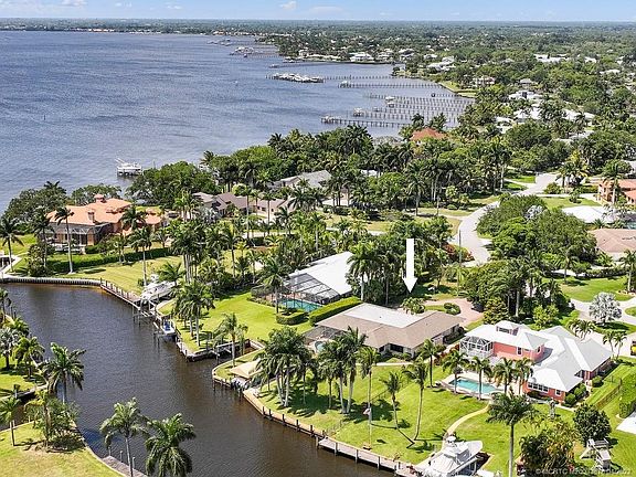 Calling all boaters and sunset lovers! Nestled in North River Shores on one of the most desirable streets of River Trail, this spacious canal front home is situated three lots in from the St Lucie River. Boaters paradise with multiple dockage; can dock up to 70 ft yacht, plus cutout with 16k lb lift and grandfathered in awning! Enjoy stunning 180-degree water views & sunsets from your covered back patio, pool & dock! Located on an oversized .64-acre lot with plenty of back yard for the kids & furry friends! Great floor plan for entertaining or family gatherings; split bedrooms with open kitchen/family & open formal dining/living room! Home features include complete accordion shutters, electric shutters off the patio, & 2016- 30yr roof. Enjoy the large newly updated master bath with double vanities, rain shower, & large walk-in closet. Location is excellent, minutes to beaches, downtown area, shopping, restaurants and the St Lucie Inlet- Looking to live the Florida dreamthis is it!