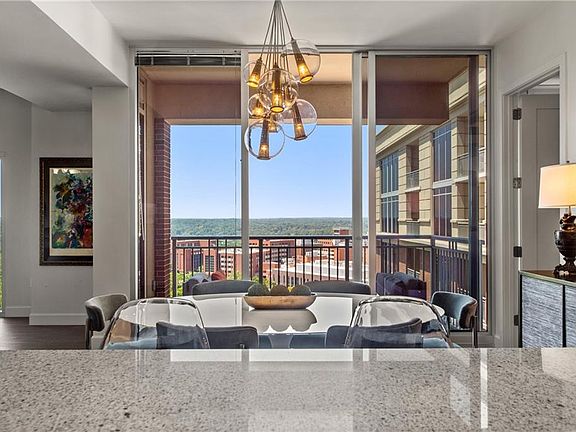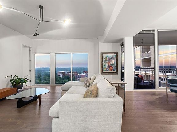 Stunning high-floor residence offering breathtaking panoramic sunset views at The Brookwood, Atlanta’s first and only LEED-Certified residential building! This highly desirable and rare ’09 floor plan features a split en-suite layout and includes a versatile den/third bedroom with an additional full bathroom off the living area. Custom wallpaper, blackout shades, carpeting, and designer lighting throughout make this home truly exceptional. A gracious recessed balcony provides the perfect spot to enjoy the sunset nightly. Nestled on the 17th floor on the quiet side of the building, the residence overlooks the coveted pool and amenity level below. The main living space exudes luxury with gleaming hardwood floors and expansive windows that flood the home with natural light and treetop vistas. The kitchen is a chef’s dream, featuring an all-Viking stainless steel appliance package, including a 4-burner gas range, and a massive center island with 3” thick granite countertops. The oversized owner’s suite offers stunning sunset views and a spa-like bathroom with a frameless glass shower, separate soaking tub, double vanity, and a sophisticated walk-in closet outfitted with custom California Closets. Washer and dryer are brand new. Additional bedroom is generously sized, with en-suite bath featuring frameless shower, custom vanity, and ample closet space. The residence is fully equipped with HVAC system and a Leak Defense System for peace of mind. Life at The Brookwood is unparalleled, with some of the city’s most comprehensive lifestyle programming and amenities, including a fitness center with Peloton bikes, a saltwater pool, outdoor fireplaces and grills (including a Big Green Egg!), billiard room, club room, business center, dog park, two guest suites just across the hall, and 24/7 concierge and security services ready to meet every need. Bobby Jones Golf Course and the Northside Beltline are just a short walk away, alongside an array of shopping and dining options. First-class dining is available on the building’s first floor, including Botica, O-Sha Thai Sushi, Egg Harbor Café, and many more just across the road. Perfectly situated between Midtown and Buckhead, The Brookwood offers the epitome of convenience and access to all that Atlanta has to offer.