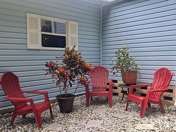 Lot rent includes lawn, trash and recycling, water and sewer, taxes, and use of all amenities. Clubhouse, library, shuffleboard, heated pool, billiards, social activities, and more. Home sold “As Is”.