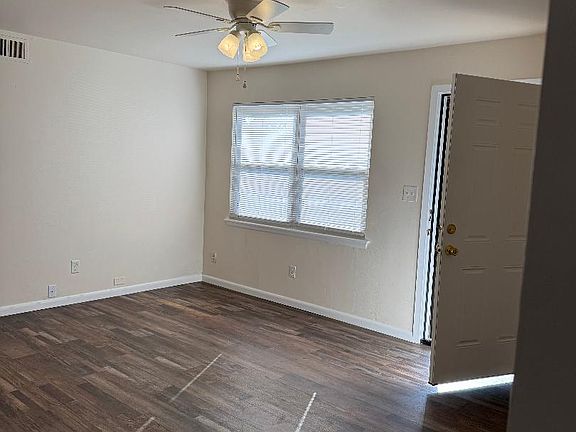 Zillow says this property's rent value is $1248. But their value is too much. (see pictures for picture of their value) This is a very clean and well-maintained property. It is a 3 bed, 1 bath, 1 car garage, single family home. It has been completely repainted inside. The kitchen includes an electric range and new granite kitchen counter tops. It also has new mini blinds on all the windows, and new LVP flooring throughout the home. The windows were replaced a few years with energy efficient Thermopane windows. Home also has central heat and air.