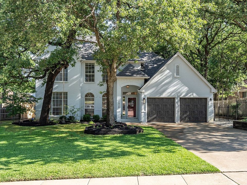 OFFER DEADLINE SUNDAY, JUNE 18 @ 8PM. Welcome Home to this 2-story dream in the prestigious Grapevine-Colleyville school district. Surrounded by an expansive front yard & stunning white-painted brick exterior, you will be captivated by the curb appeal. Inside you will find elegant wood-like tile flooring that flows throughout the main living spaces & a versatile home office or second living area, perfectly adaptable to your needs. The large living room boasts picturesque views of the backyard oasis, complete with an oversized deck & pergola, ideal for entertaining or simply relaxing. Take a dip in the inviting pool, enveloped by a canopy of mature trees that provide shade & serenity. The primary suite & a guest room are located on the bottom floor, offering privacy & convenience, while upstairs has 3 spacious bedrooms, providing ample space to spread out. Conveniently located near shopping, dining & the DFW Airport, this home truly combines comfort, convenience & charm.