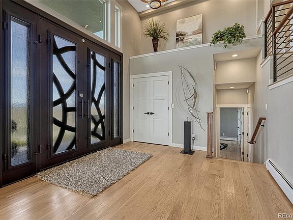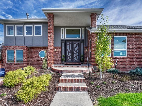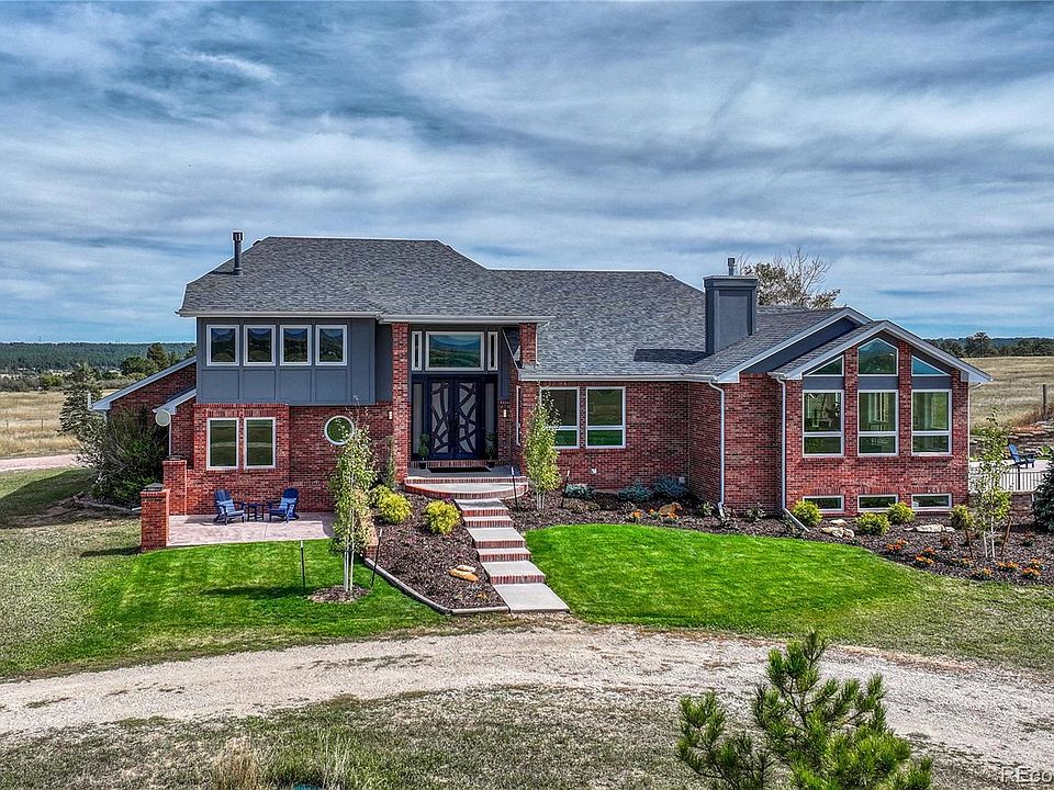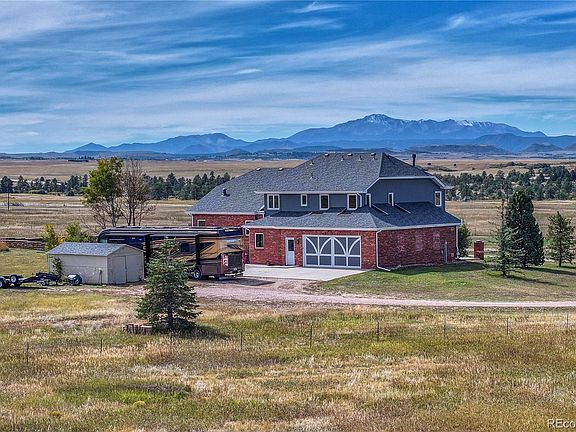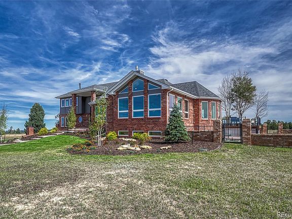 LUXURY MEETS LAND OPPORTUNITIES on 40 Acres in Franktown, CO. Two Homes, Two Wells, Adjudicated Water Rights, Modern Upgrades & Breathtaking Mountain Views. Ag exemption for low taxes, gated entrance and No HOA. Minutes to Castlewood Canyon State Park with easy access to Parker, Castle Rock, or Colorado Springs. (MAIN HOME) KITCHEN: Chef’s kitchen with full Wolf appliance package including built-in refrigerator, wine fridge, 48” gas range, commercial hood, granite counters, and large breakfast island with generous storage and seating—ideal for entertaining. PRIMARY SUITE: Spacious bedroom with 3 closets, ensuite bath and mountain views. SECONDARY BEDS/BATHS: Additional bedrooms and baths provide flexibility for a variety of living arrangements. Total 5 bedrooms, 5 baths. DINING/LIVING ROOMS: Open living and dining areas with hickory wood floors and expansive views. FAMILY ROOM: Bright gathering space with 3-sided fireplace and picturesque views. overlooking the new brick courtyard, perfect for entertaining. FINISHED BASEMENT: Private entrance makes this level ideal for multigenerational living. Spa-inspired bath features heated floors, 6-person sauna, steam shower with 6 sprayers, and oversized cascading waterfall head. SECOND HOME: Fully renovated 2 bed/1 bath residence with oversized 2-car garage. Currently used as a rental, offering income potential or guest accommodations. OUTDOOR: 850 sq. ft. wraparound deck with panoramic mountain and countryside views, stamped concrete patio with built-in fire pit, landscaped grounds, RV/EV 50-amp hookup, and brick courtyard. HOME EXTRA/UPGRADESS: New roof, exterior paint, landscaping, AC units (x2), sump pump, $105k in windows, new trim and modern casings, all-new interior panel doors, new carpet, updated lighting and fresh paint throughout. *Sq Ft listed is for main home only*