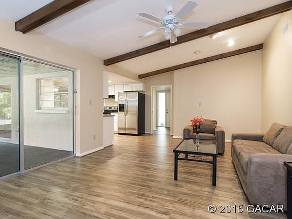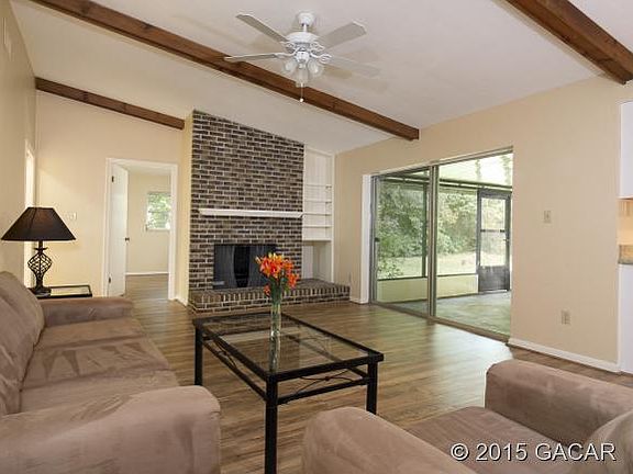 Completely remodeled 4 bdrm, 2 ba single-family home. Beautiful new floors throughout. Completely new kitchen with granite countertops and stainless appliances. Both bathrooms have new sinks, cabinets and tile floors. New light fixtures throughout. Vaulted ceiling in family room with brick fireplace. Fenced in backyard with newly landscaped front yard. New paint (interior and exterior). Great neighborhood with top-rated schools. Close to the University of Florida, Shands Hospital & I-75. HOME WARRANTY included with acceptable contract price.