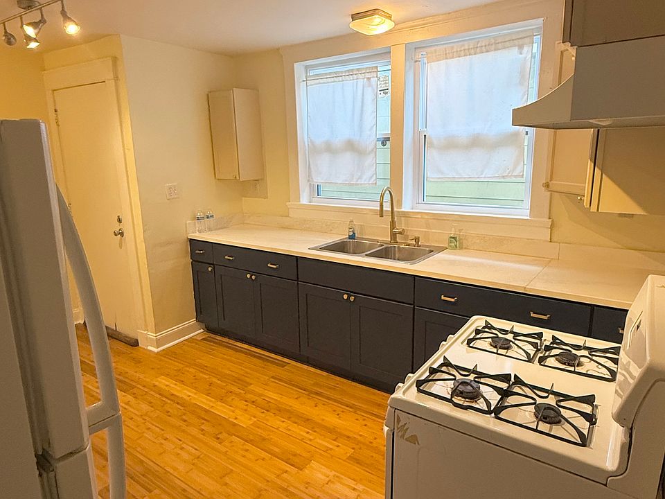 The apartment is shotgun style, however, there is a side door off of the kitchen that makes the living area more private if sharing with roommates.